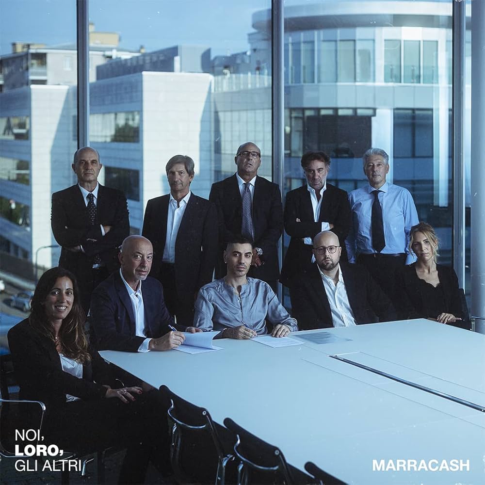 La terza e ultima copertina ritrae Marracash circondato da una folla di persone viste di spalle, simboleggiando la distanza, l’anonimato e la massa: gli Altri. Le tre immagini, scattate da Andrea Bianchera, offrono un’analisi completa e stratificata dell’identità dell’artista: l’intimo (“Noi”), il professionale (“Loro”) e l’esterno (“Gli Altri”).