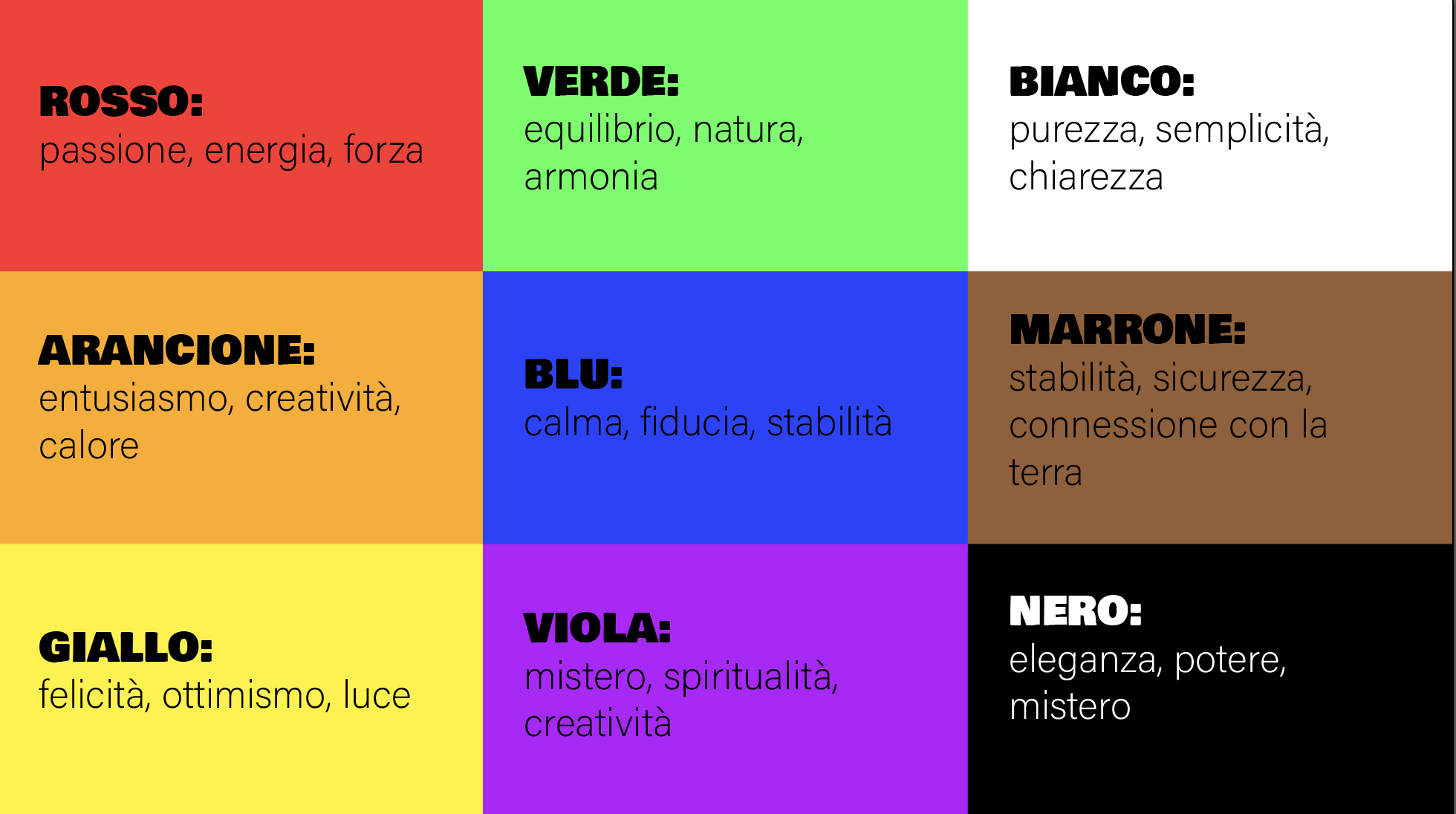 Il nero simboleggia eleganza, potere e mistero. È un colore forte e sofisticato che trasmette autorità e raffinatezza. In grafica è spesso usato per creare contrasto, mettere in risalto elementi o dare un tono formale e moderno alle composizioni. Pur evocando talvolta oscurità o distanza, il nero rimane un colore di grande impatto visivo, capace di rendere ogni design più deciso e autorevole.